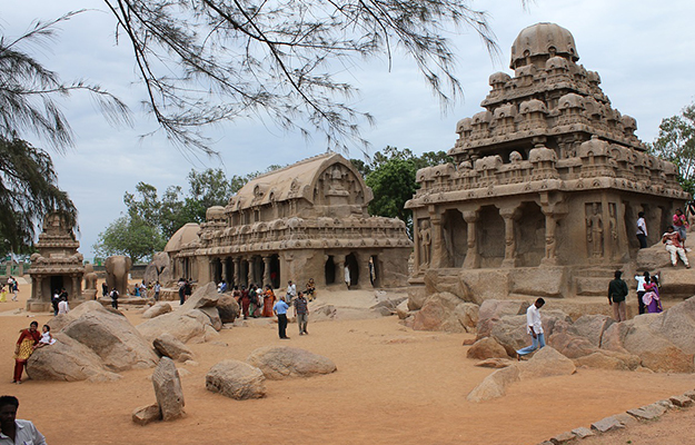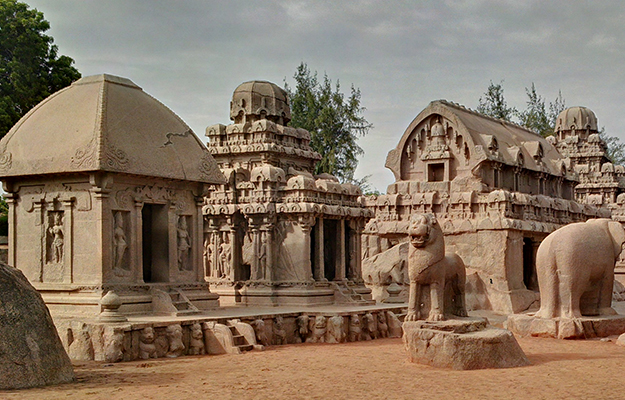 - Pancha rathas - resembles a chariot (ratha), and each is carved over a single rock. Dharmaraja Ratha, Bhima Ratha, Arjuna Ratha, Nakula Sahadeva Ratha, and Draupadi Ratha.